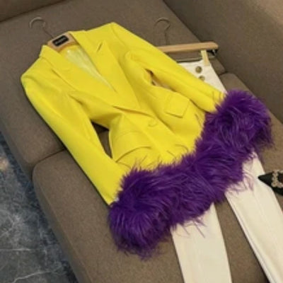 High Quality Lady elegant blazer dress with feathers