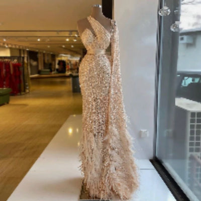 High End Fish Tail Banquet Temperament Single Shoulder Dress