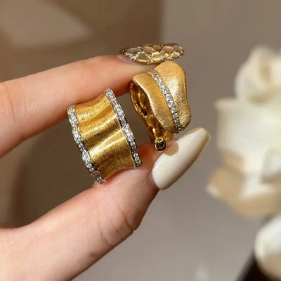 Light luxury wire drawing bananas leaf shaped diamond inlaid ring Couple High quality retro palace style irregular ring jewelry