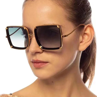 Metal ring rivets sunglasses in Europe and the United States trend box senior sense of sunglasses concave styling retro sunglass