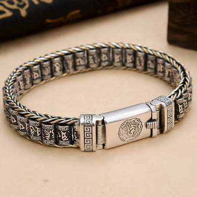 Silver S925 bracelet hand-woven six-word mantra golden edge roller silver rotatable silver retro personality men