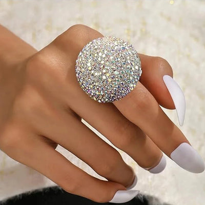 Stonefans Crystal Round Exaggerated Rings Party Finger Accessories Fashion Women Bling Rhinestone Open Ring Adjustable Jewelry