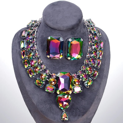 Stonefans Exaggerated Necklace Earrings Set Colorful Women Charms Large Jewelry Sets Luxury Designs for Women Elegant Gifts
