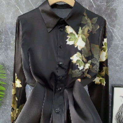 Spring Long-sleeved shirt Turndown collar Vintage Women