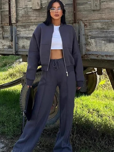 Women Sweatsuit Set Vintage O-neck Zipper Bomber Jackets High Waist Loose Pants Suit Female 2025 Spring Fashion Lady Sportswear