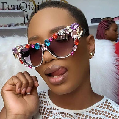 Diamond Cat Eye Big Sunglasses Women Oversized Sun Glasses Luxury Brand Designer Crystal Rhinestone Eyewear Glitter Gafas De Sol