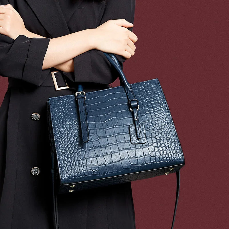 Luxury Women Croc Embossed Genuine Leather Hand Bag