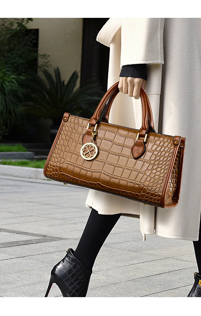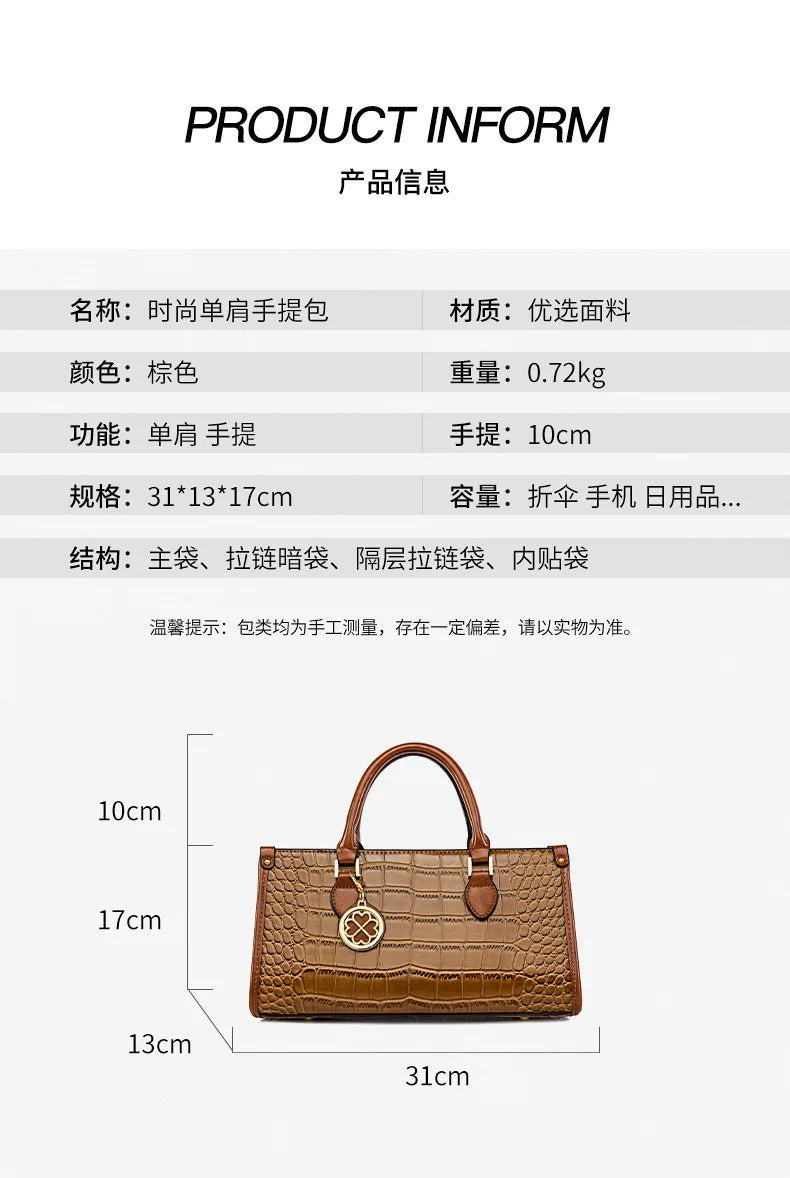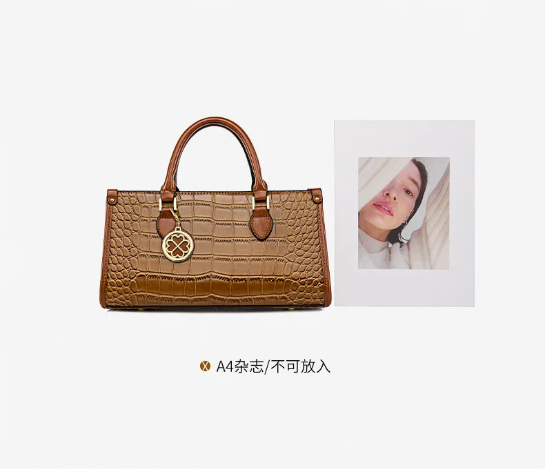 Pu Leather Crocodile Woman Tote Shoulder Hand Bag Ladies, Zipper pockets, mobile phone pockets, ID pockets, sandwich zipper pockets