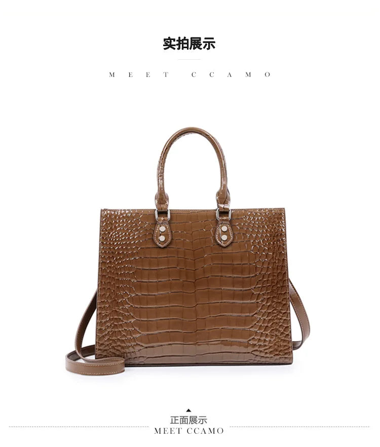 Genuine Leather Luxury Woman Tote Bag 1 Piece Cowhide