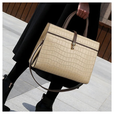 Pu Leather Ladies Women Crocodile Hand Bags Solid Colours