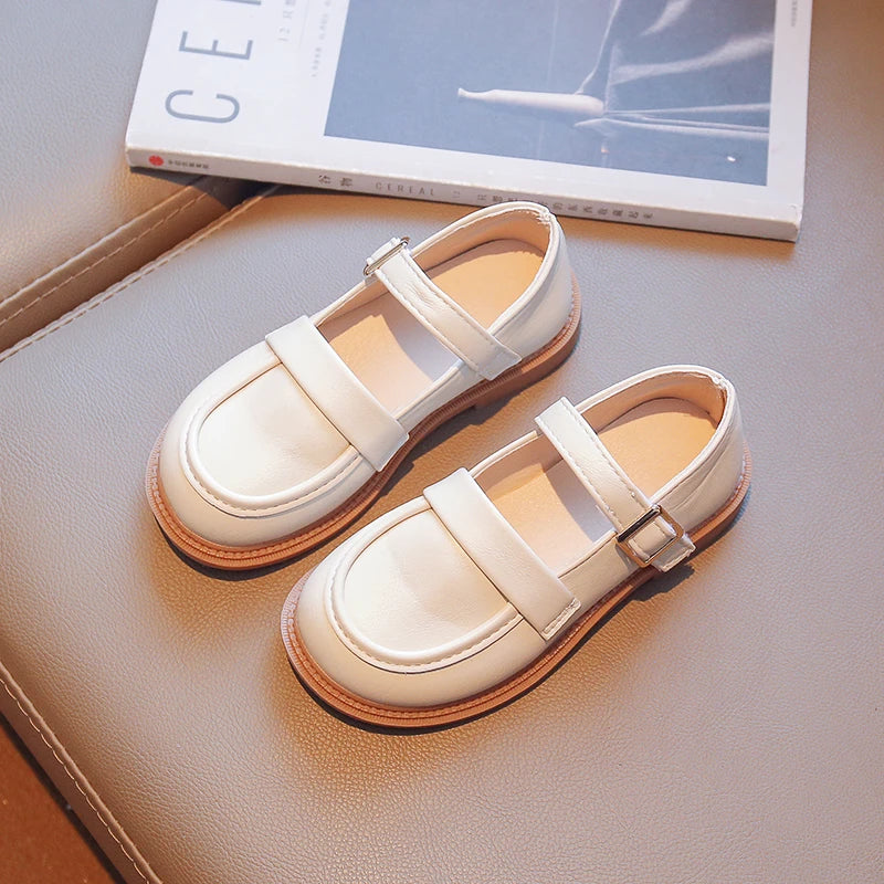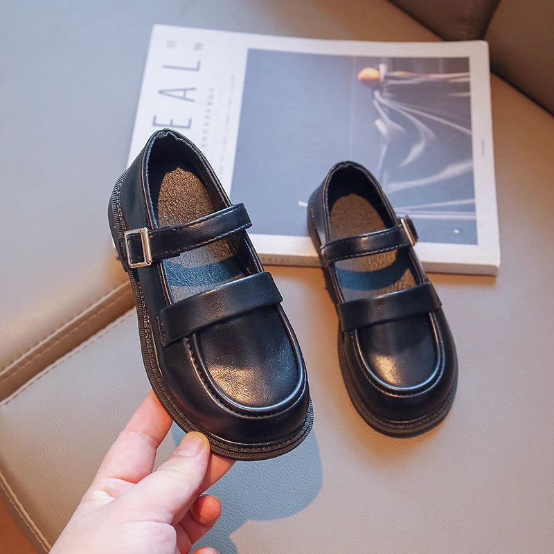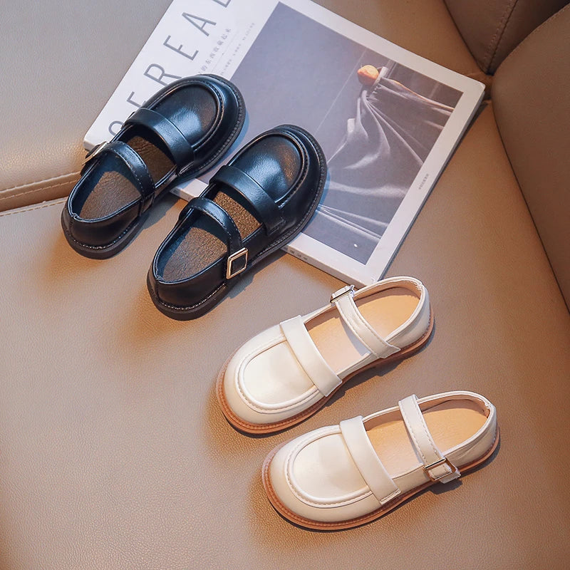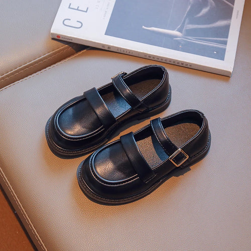 Children Leather Shoes for Girls Black Beige Flats for School Party