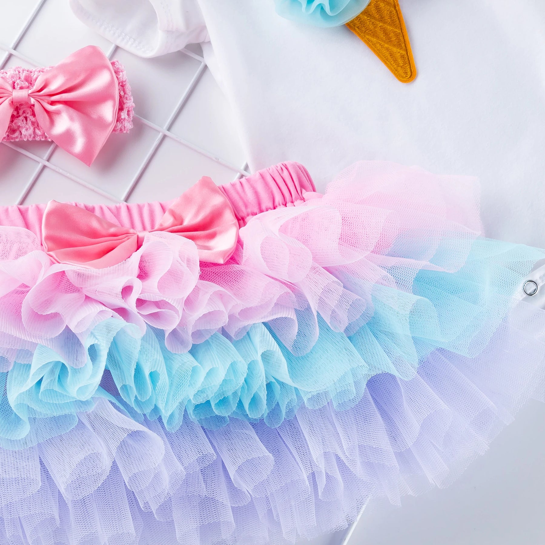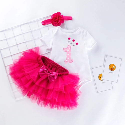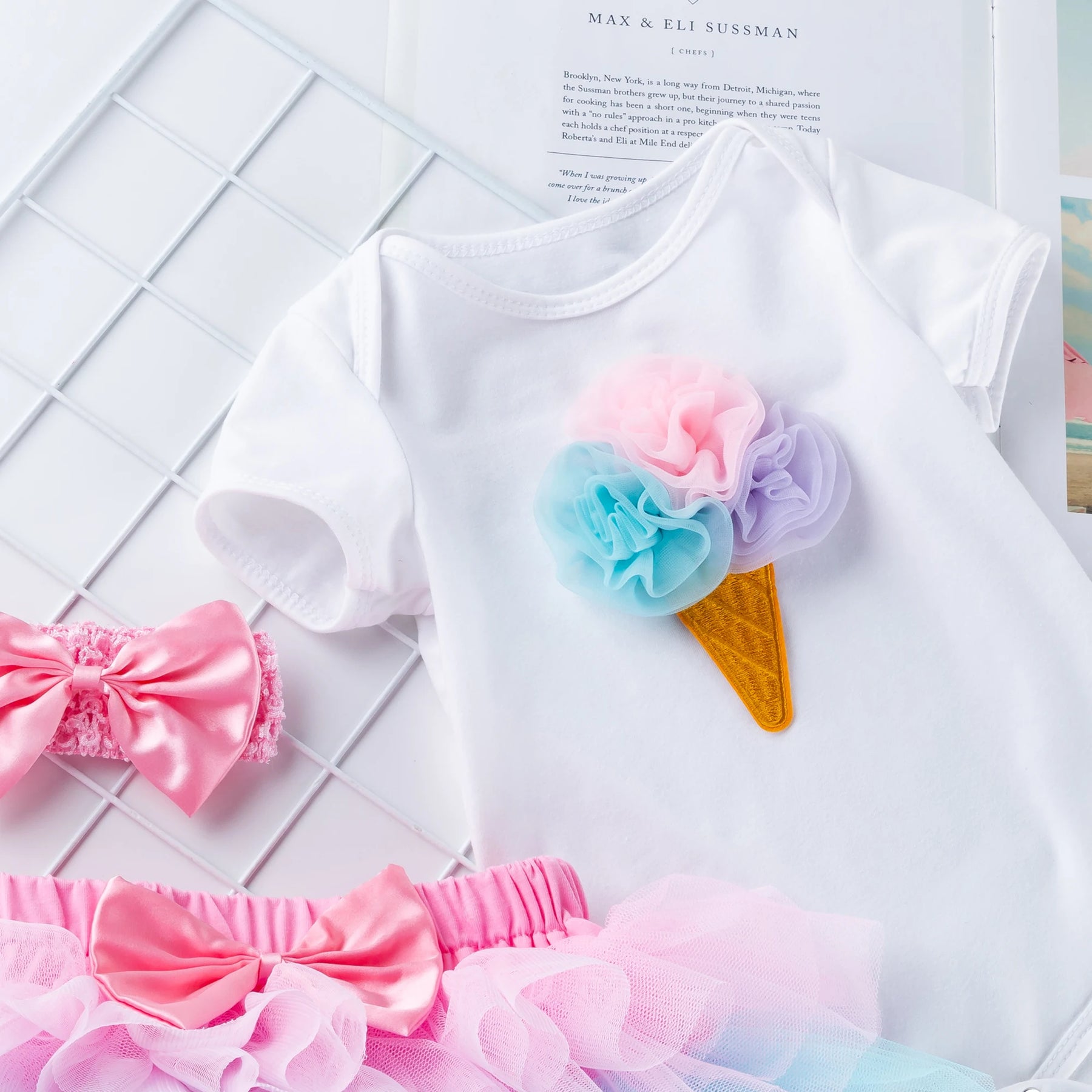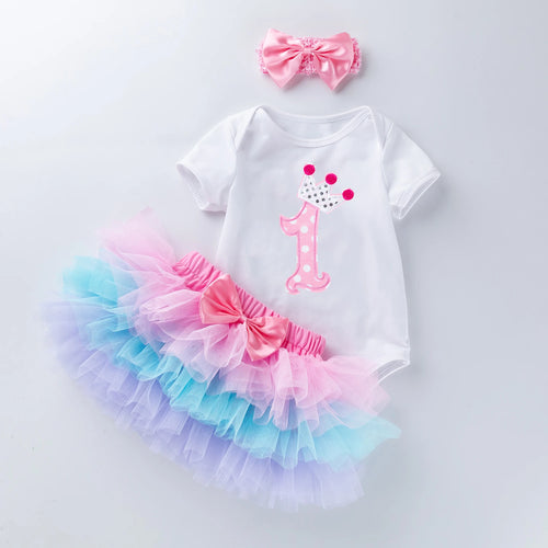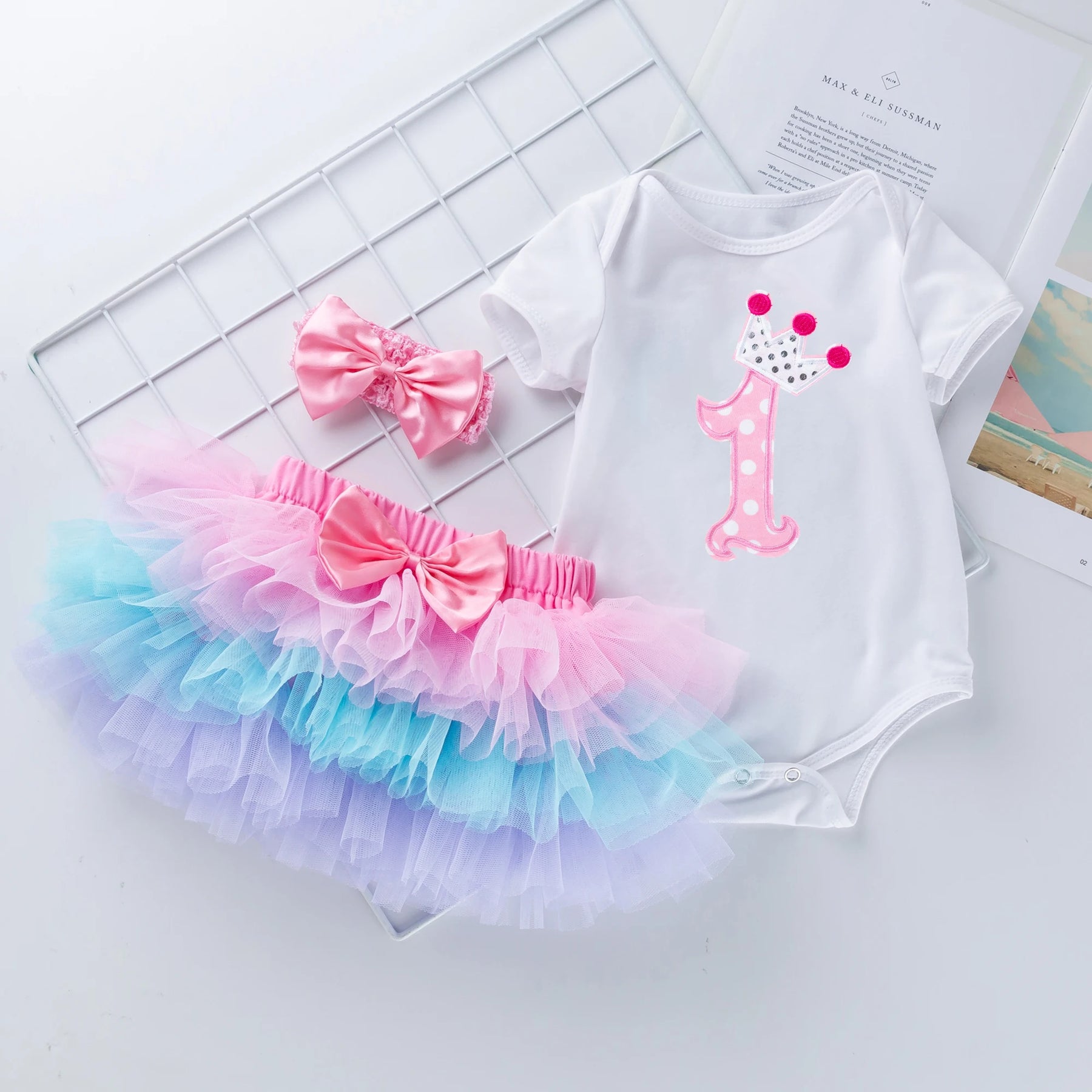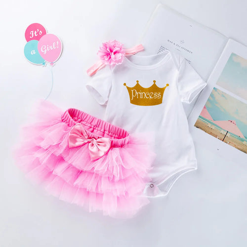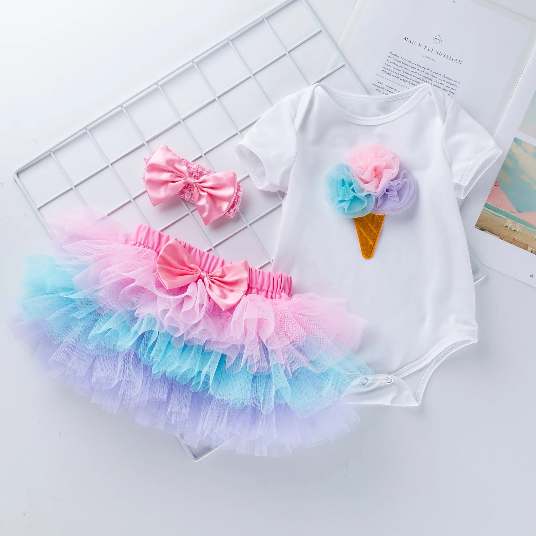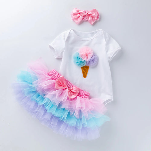 Tutu Baby Birthday Set Short Sleeve Romper Petti skirt Girls 3 Pcs