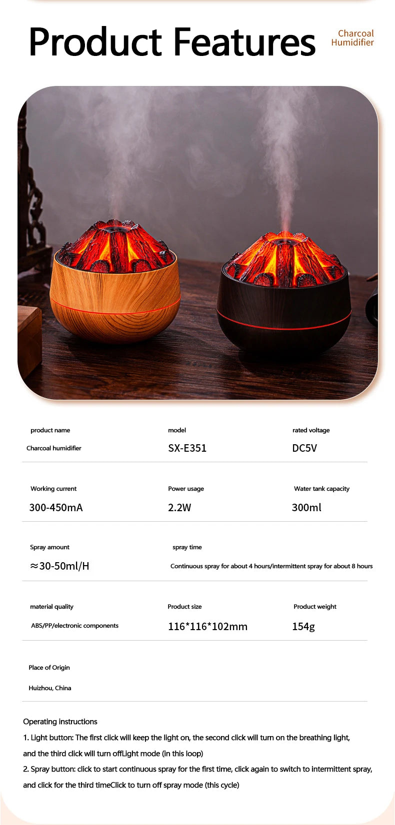 Humidifying Capacity: 30ml/h