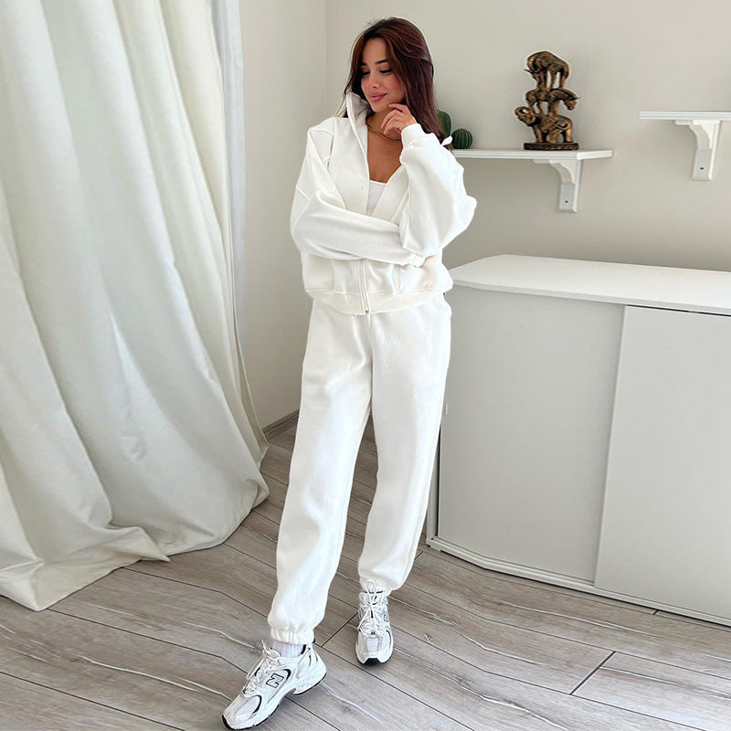 Stay cozy and stylish in our Fleece-Lined Stand-Up Collar Long-Sleeved Cardigan paired with Ankle-Tied Casual Pants Set. The fleece lining provides warmth, while the stand-up collar and long sleeves add a touch of sophistication.