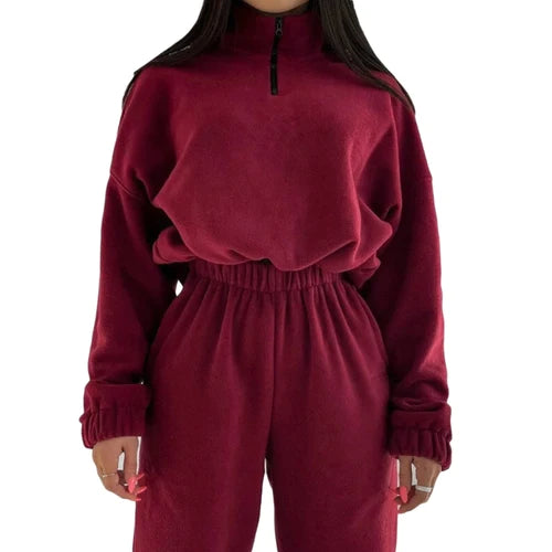 Ladies' Sporty and Stylish Sweatshirt Fleece Pullover and Joggers Set