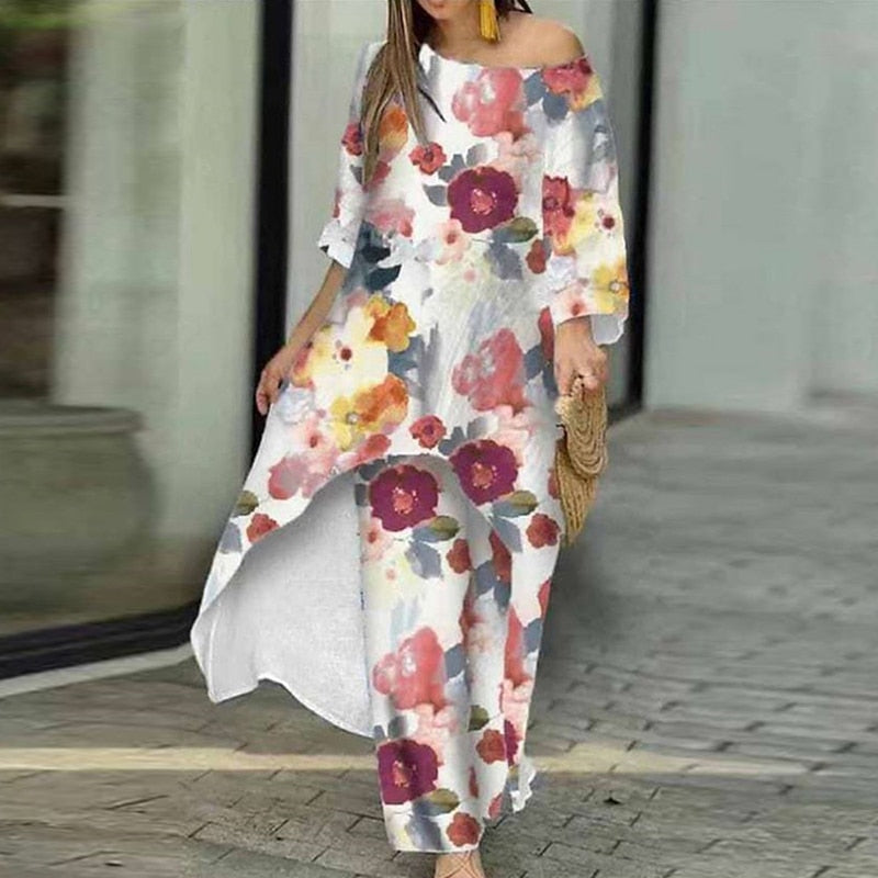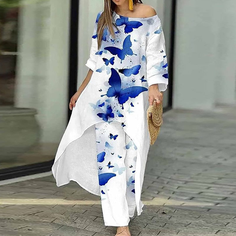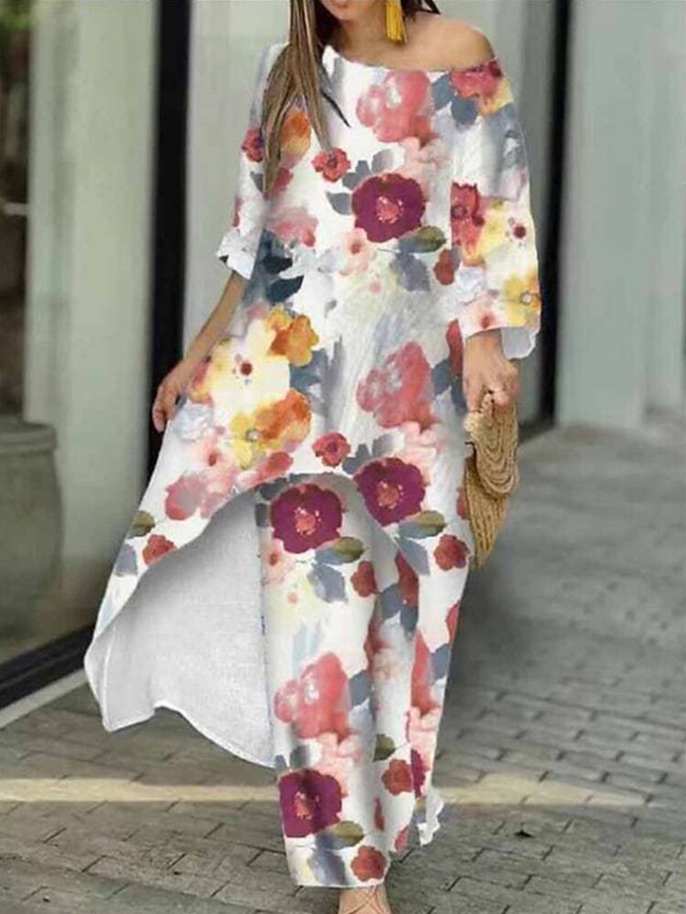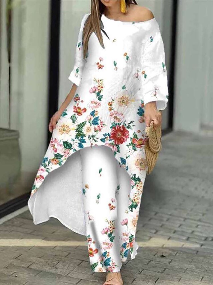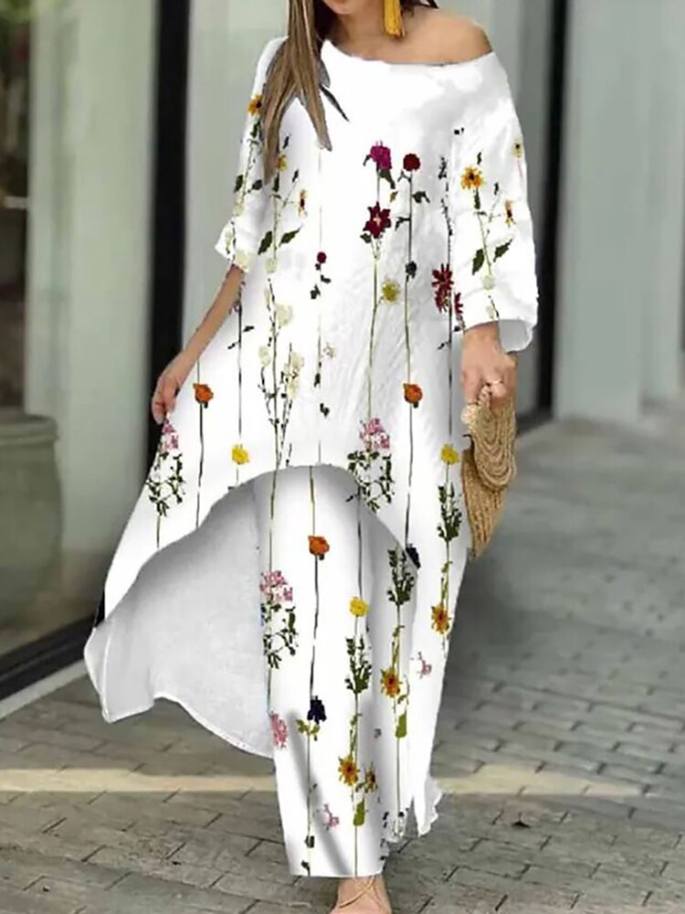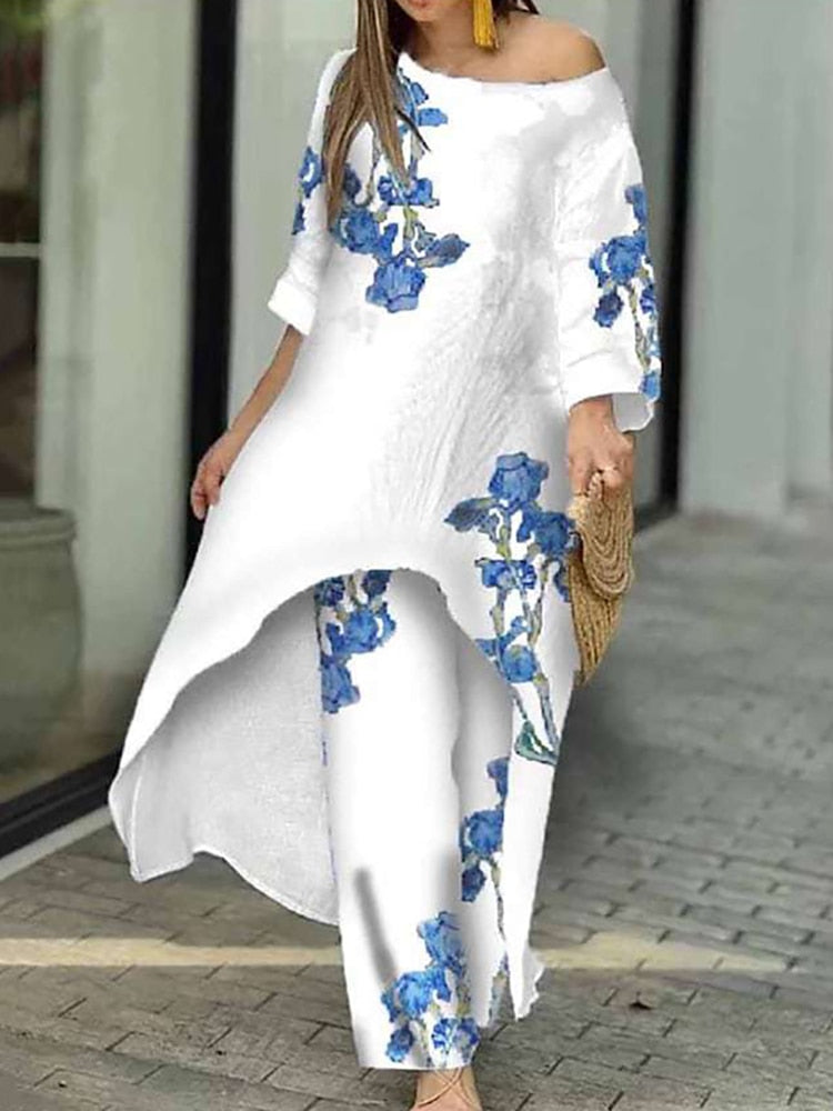 Loungewear X-Long Top Print Three Quater Sleeve O-Neck Outfit