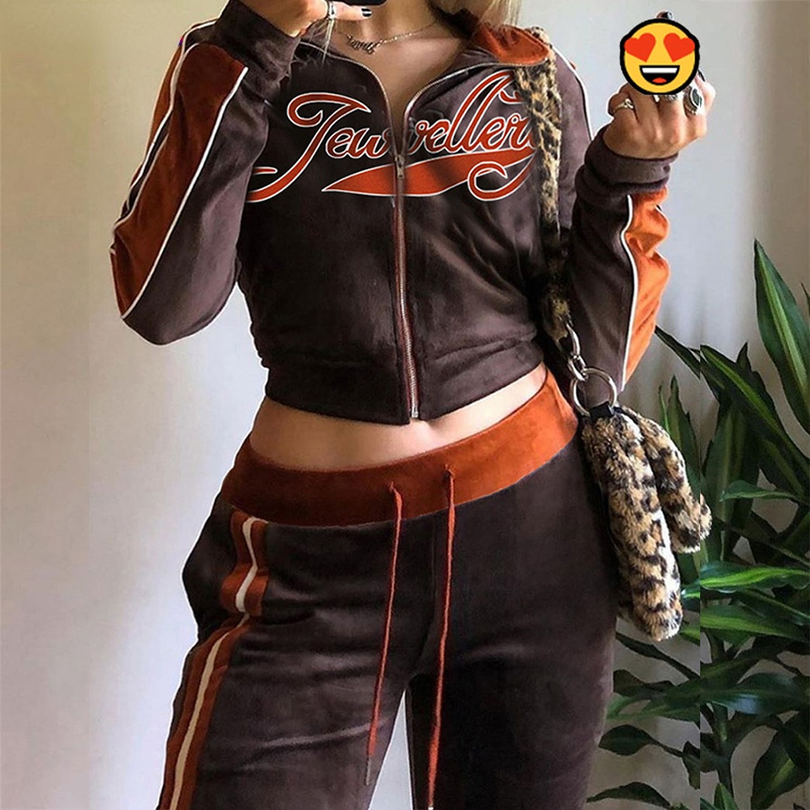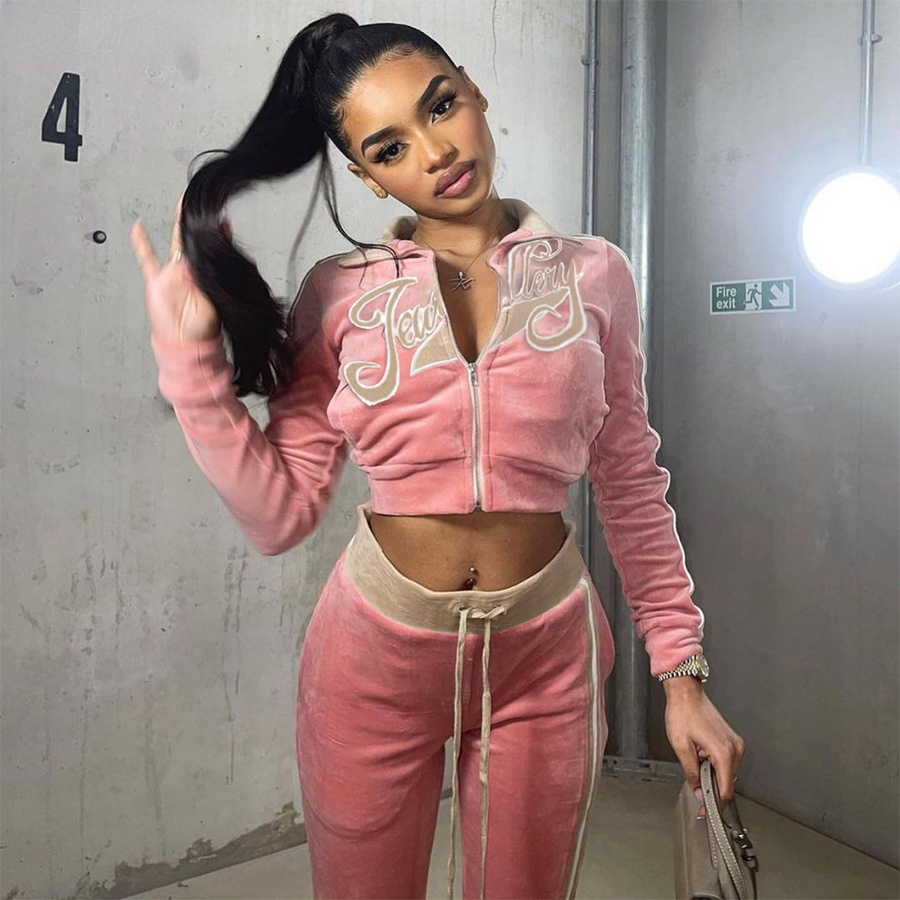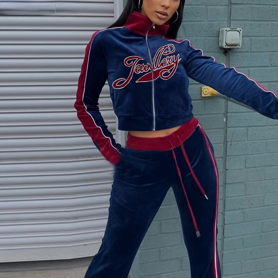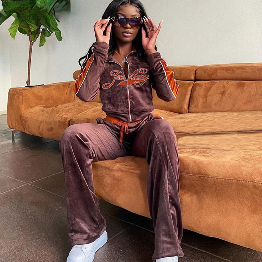Tracksuit Embroidery Letter Velvet 2piece Set Fitness Zip