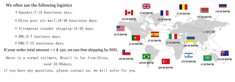 For wholesale,we will offer discount or free express shipping which only takes 5-7 business days to arrive.For dropshipping,We provide,We will help you better service your customers,please note "dropshipping" below your order. We will remove all ads, paper and seller information.