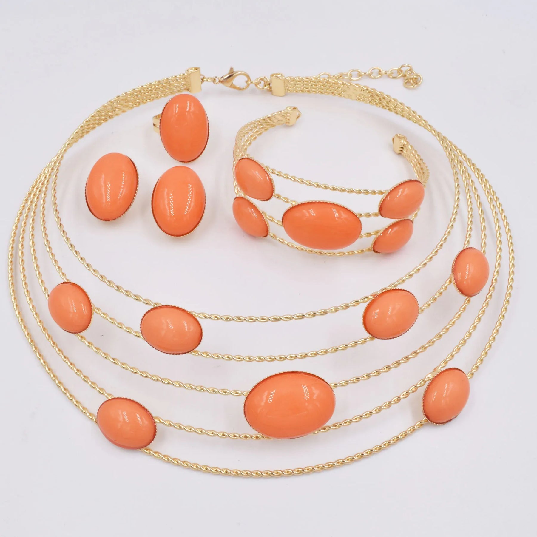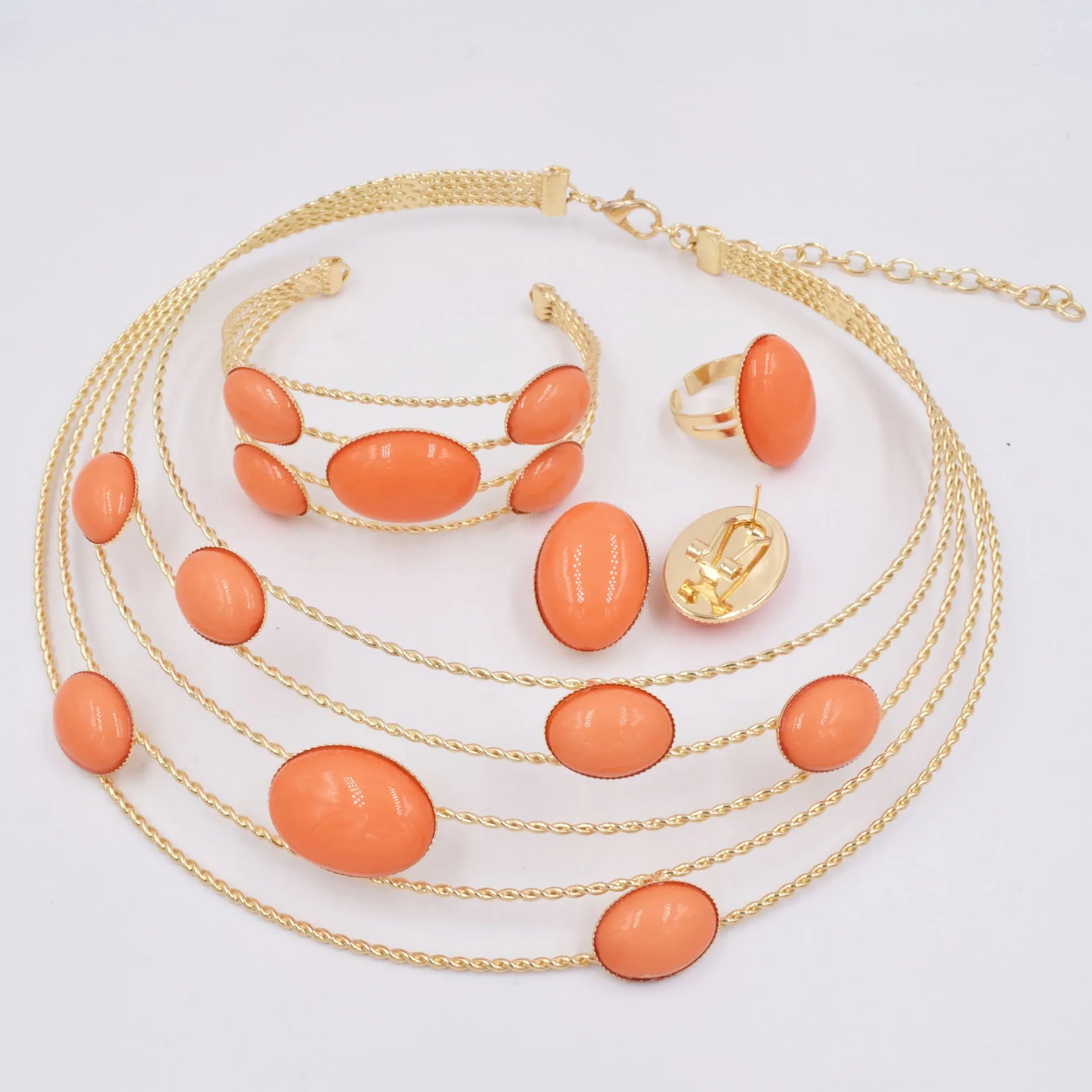 Italian Gold Plated Jewelry Set Dubai Gold Color High Quality Ladies