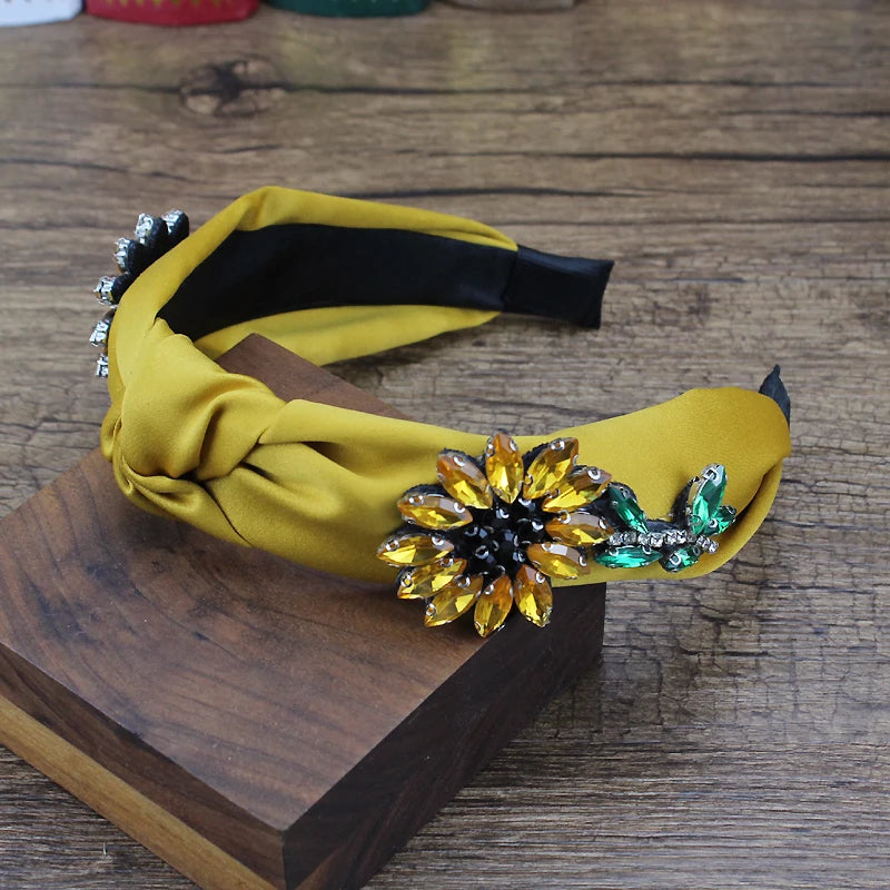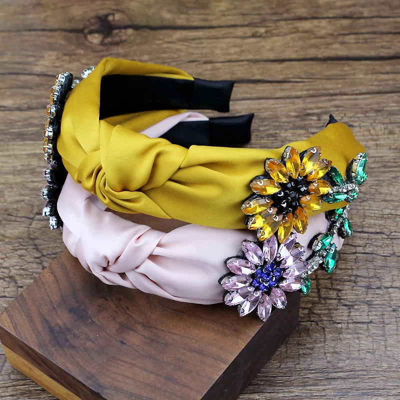 Cute Yellow Pink Flower Hairbands Crystal Rhinestone Bow Headbands
