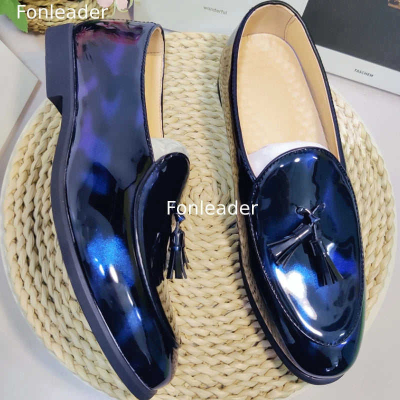 Size 38-47 Blue Color Patent Leather Dress Shoes Classic Casual Design Lightweight Comfortable Men Tassels Loafer Shoes