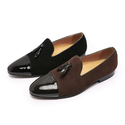 High quality men's leather shoes slip on casual tassel loafers driving