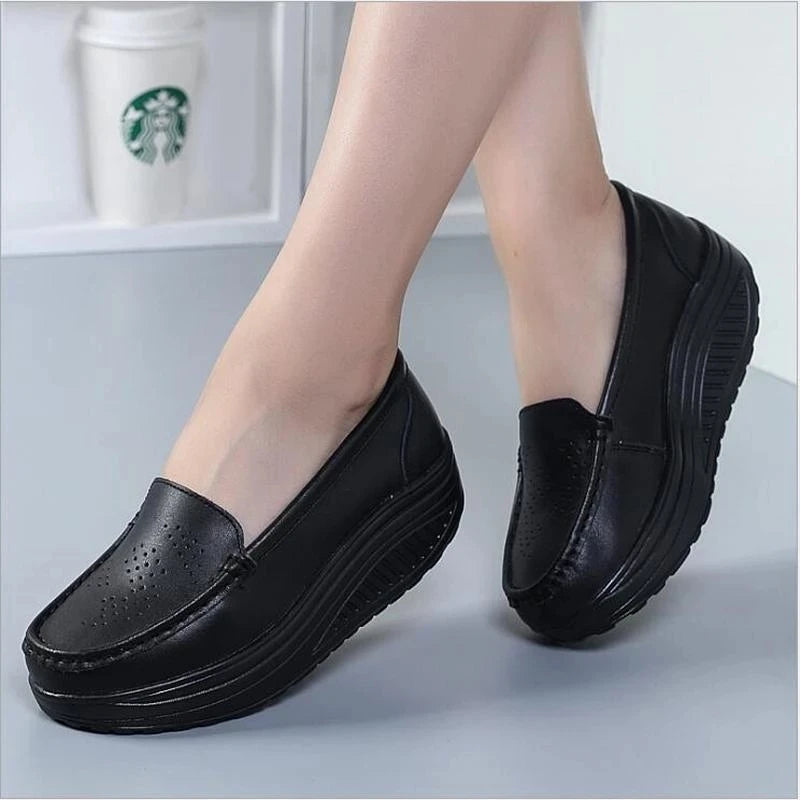 Cow Two-Layer Leather Black Women'S Shoes Breathable Fashion Flat