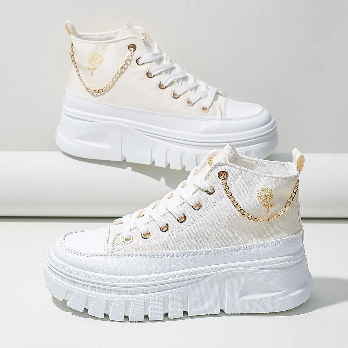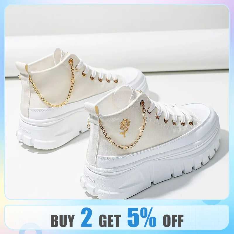 Women Lace-Up Front High Top Flatform Canvas Shoes Fashion Casual