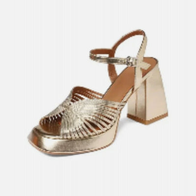 Big Size Ladies Platform gold block heel shoe