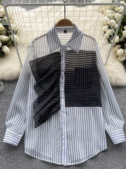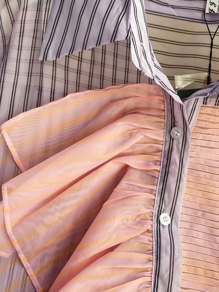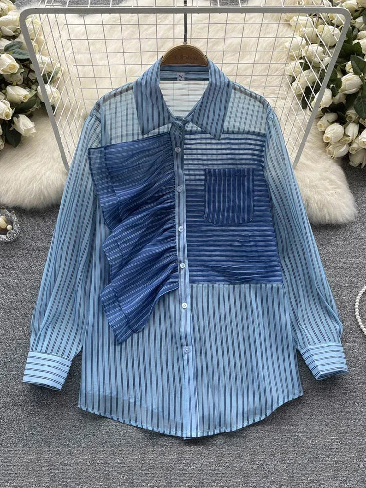 Spring Summer New Fashion Striped Shirt Women's Ruffled Loose
