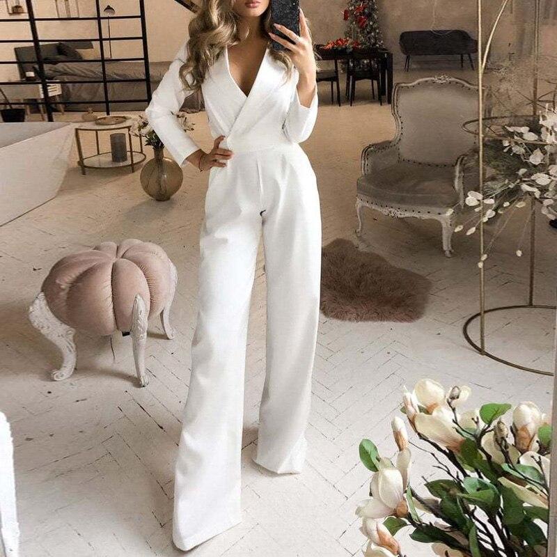 Women Fashion Wide Leg Party Playsuit Overalls casual Solid Jumpsuits
