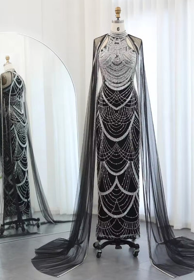 Msikoods Elegant Black Arabia Prom Dresses Mermaid Long Sleeves Muslim
