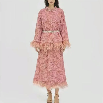 Vintage Long Sleeve Button-up Shirts Blusas Chic Tops+skirt suit