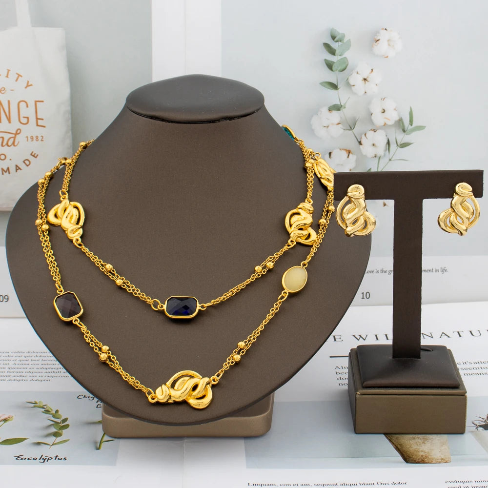 Style: TRENDY,Copper Luxury Necklace Jewelry Set