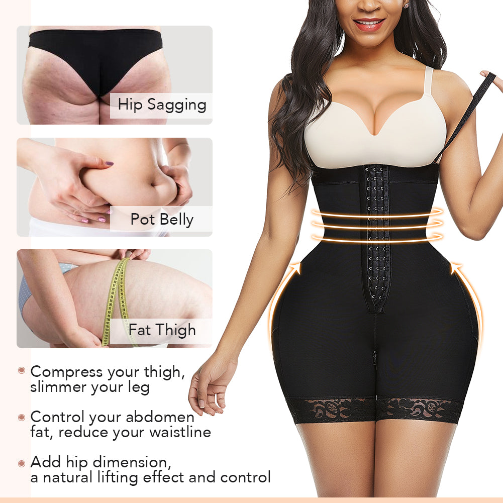 Product Details The Bodysuit Plus Size Skin Colour Adjustable Strap Slimming Legs flatter your figure without being too constricting. It Features:1. 3 Hook and eye closure for a great fit;2. The glue on the leg opening is not easy to roll;3. 4cm rubber band at the waist that maximizes the comfort;4. One rubber bone on both sides of the waist to prevent rolling;5. 3 layers of abdomen design to strengthen abdomen compression;6. Crotch with opening design provides convenience for women to go to the toilet.