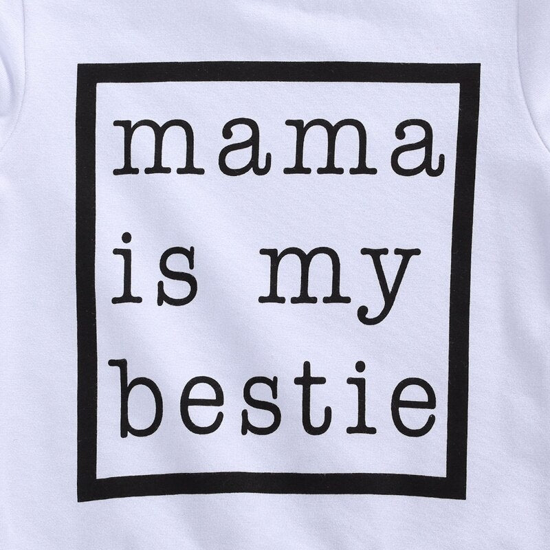 Introducing the Babies Full Length Pullover, perfect for chilly autumn and winter days! This hoodie is a great way to keep your little one warm, while also looking stylish. The letter printed "Mama is my Bestie" design will make them look adorable, and the soft material will keep them comfortable throughout all their activities. The round neck long-sleeved top has ribbed welt and cuffs, ensuring a non-slip and painless fit for your child. Plus, it's incredibly easy to put on and take off! Perfect for sportswear, daily wear, or even just lounging around the house on cooler days–this pullover is an unbeatable choice. Make sure you get one today for your special someone!