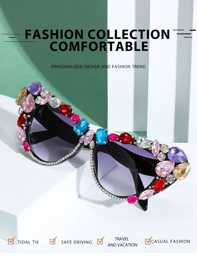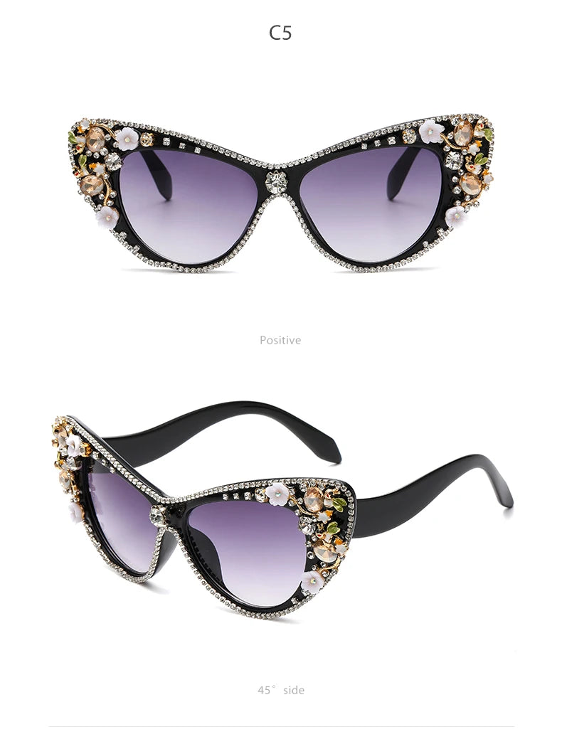 Name: Diamond Cat Eye Big Sunglasses Women Oversized Sun Glasses Luxury Brand Designer Crystal Frame Rhinestone Eyewear Oculos