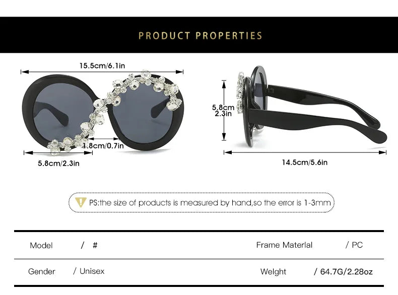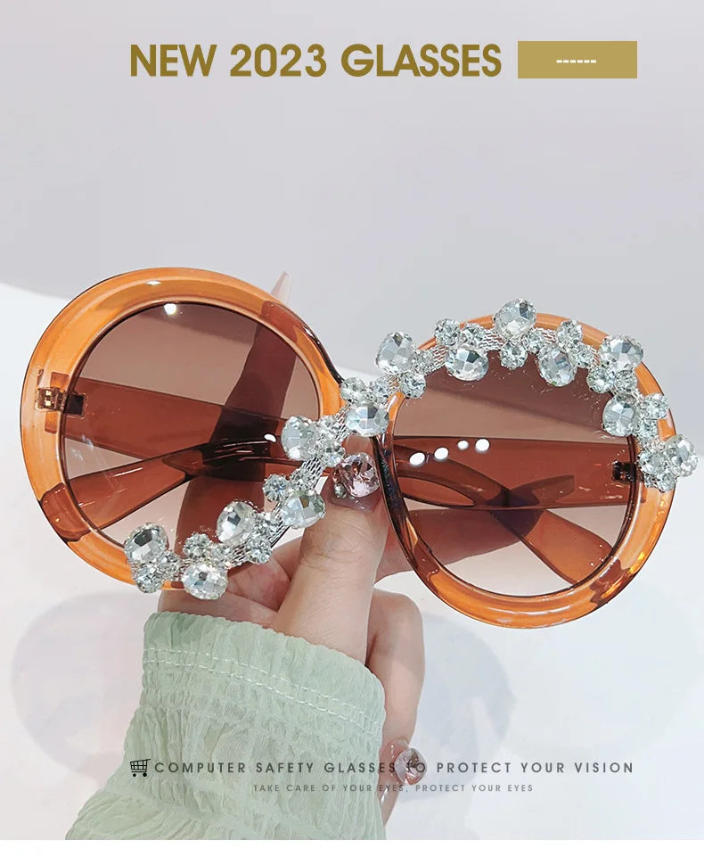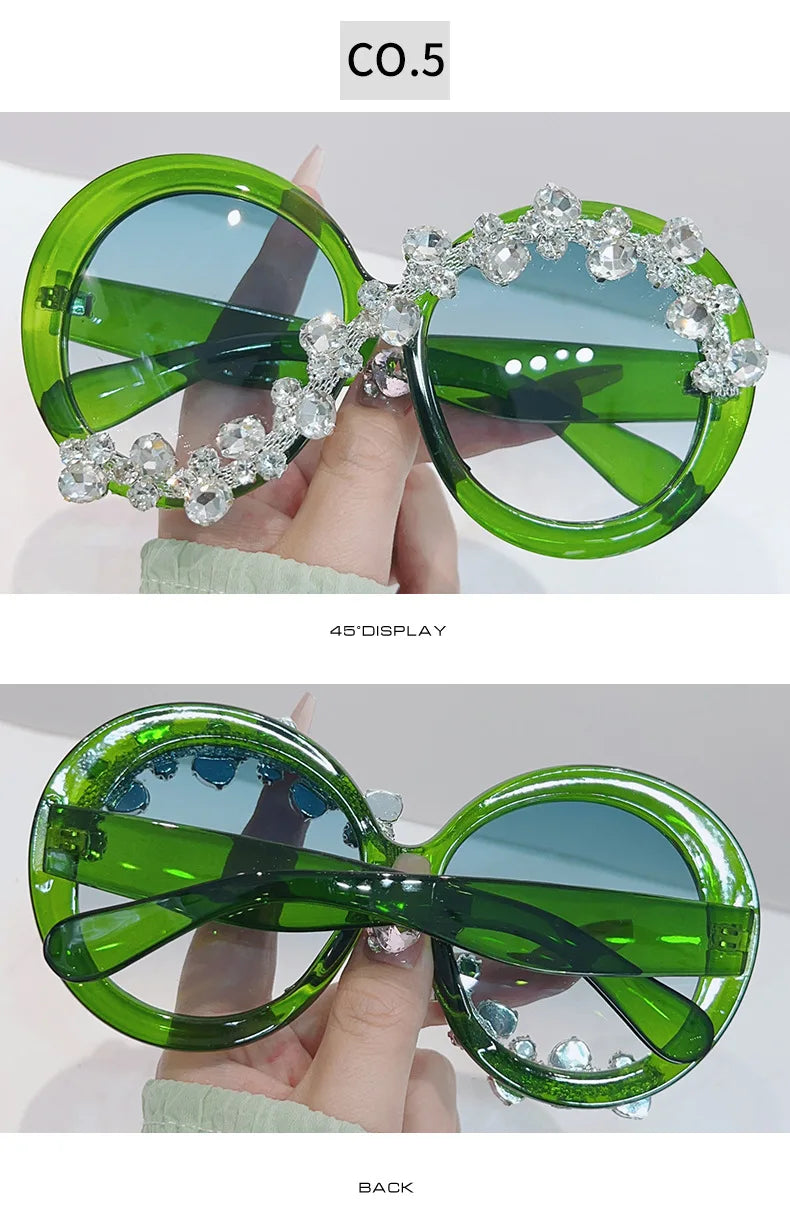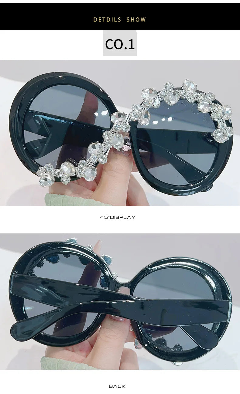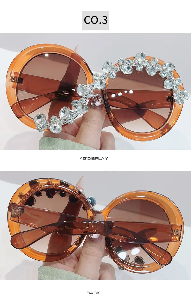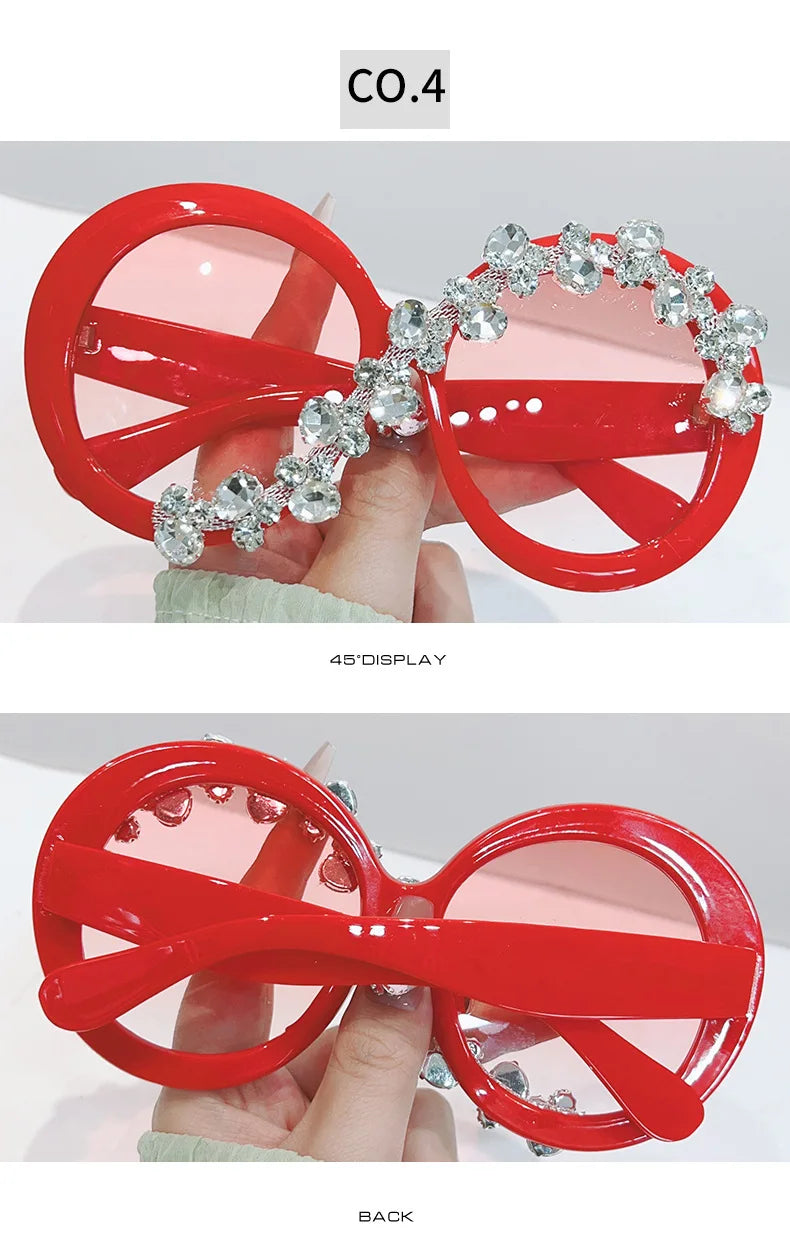 Oversized Round Diamond Sunglasses Exaggerated Personalised Ladies Sun Shade Sunglasses Outdoor Party Sun Protection Sunglasses