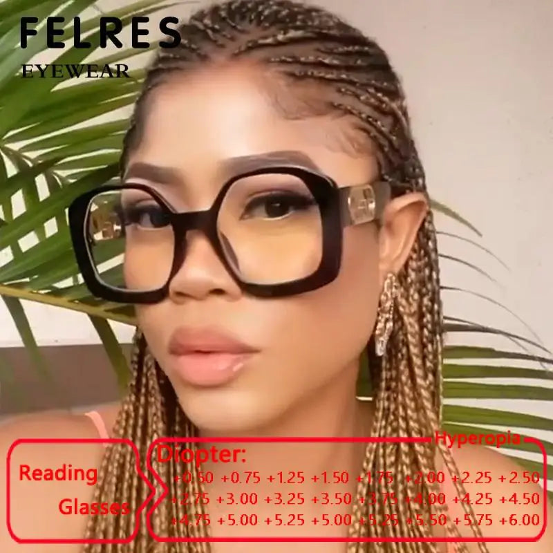 Oversized Square Ladies Reading Glasses Fashion Brand Designer Anti blue Light Computer Glasses Women Polygon Presbyopia Eyewear