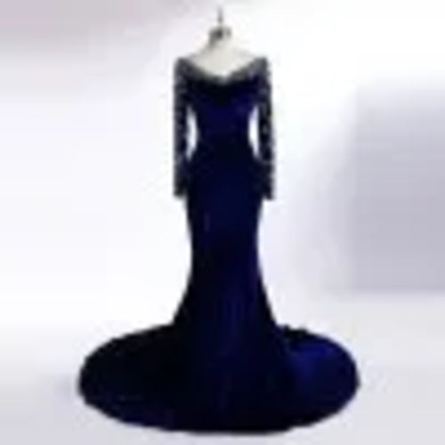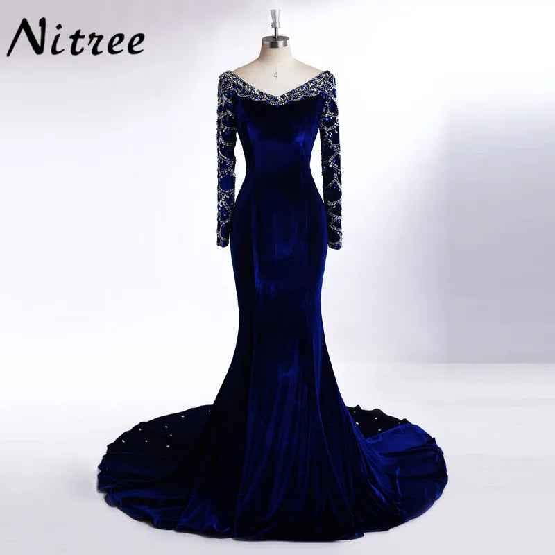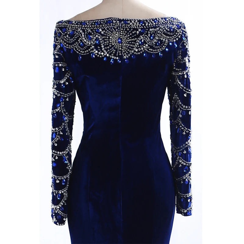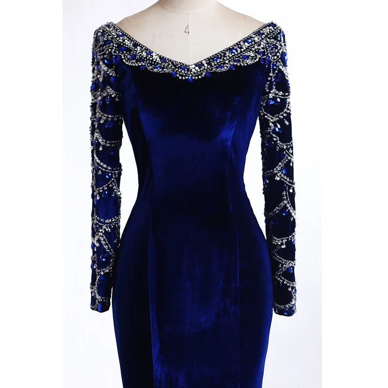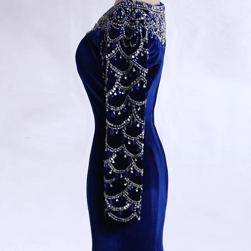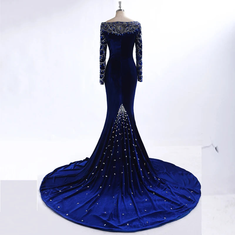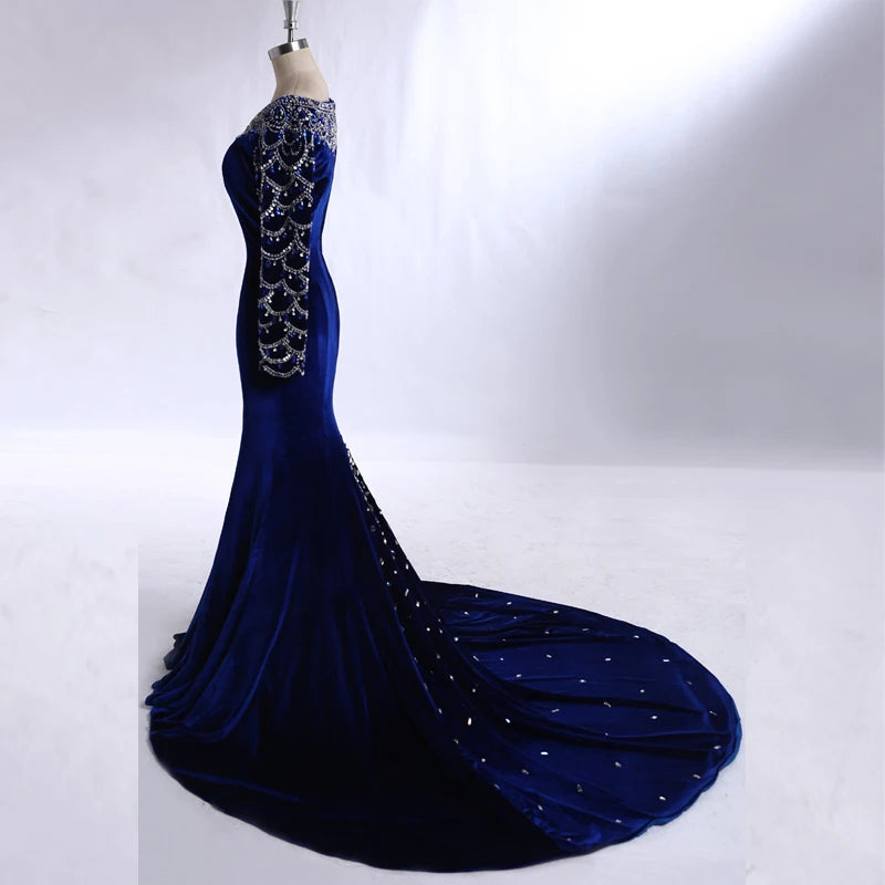 Real Pictures Royal Blue Velvet Mermaid Evening Dress 2017 Crystal