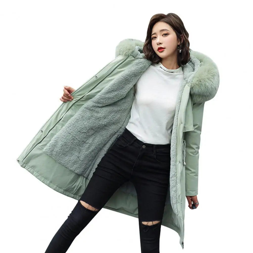 New Women Parka Long Coat Wool Liner Hooded Jacket Fur Collar Thick Warm Snow Wear Padded Parka Down Coat